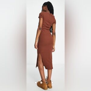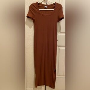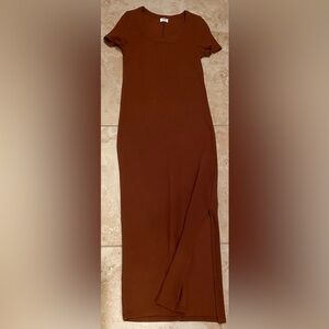 Chic and versatile Cotton On ribbed short sleeve tee MIDI Dress in color Vintage Brown (Size M). This midi dress is perfect for any season or occasion and offers good strength and versatility. Ribbed split dress in short sleeve bodycon fitted dress, with a side split. Dress it up or down, it'll work for any occasion in a beautiful Vintage Rich brown hue.