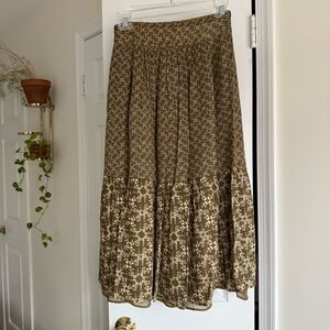 Massimo Dutti Olive Green Floral Midi Skirt Peasant Prarie Cottagecore Size 6