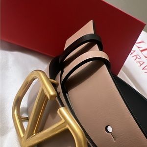 Elegant Valentino Garavani belt. Features a bold gold buckle. Stylish reversible black/tan leather design.