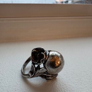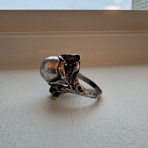 I believe this ring was made by Jen Peterson, a Danish silversmith known for finely crafted, nature-inspired designs. While not marked with her entire name, the style and craftsmanship are consistent with her work.