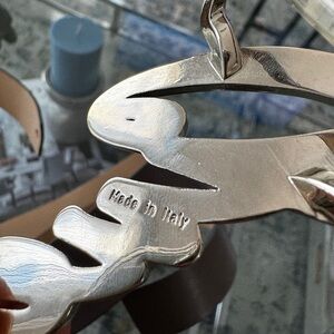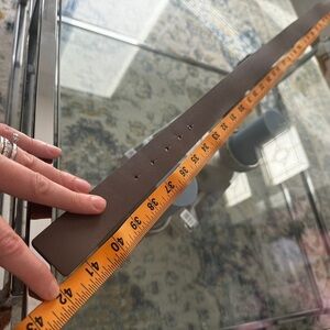 It’s like a taupe color, buckle is taupe, gray, and lime yellow and light rose color. Framed with gold