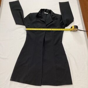 Keywords: Rampage blazer, black jacket, velvet collar, longline coat, womens size 7, sophisticated style, business attire, evening wear, classic fashion, elegant outerwear, tailored jacket, workwear, professional clothing