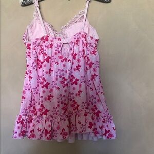 Pretty floral pink vintage VS lacy slip Y2K Fembot Ruffle Chemise