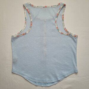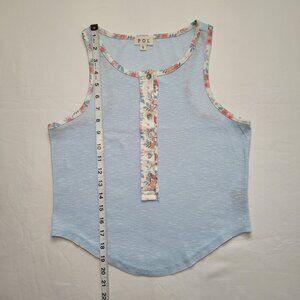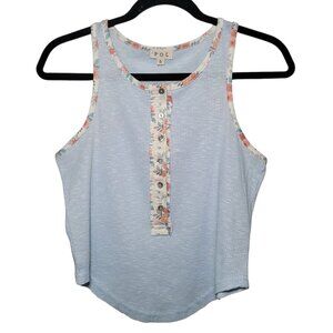POL Henley Ringer Tank Top Floral Blue Small Boho Coastal