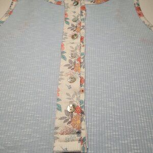 POL Henley Ringer Tank Top Floral Blue Small Retro Boho Cottagecore Coastal