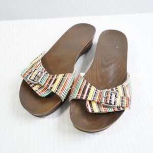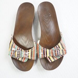 Dr Scholls Multi Color Striped Buckle Slide Sandals Wood Grain Sole Size 8