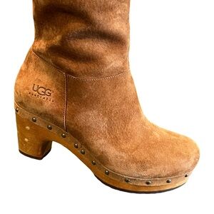 Stylish UGG heeled boots. Features braided detail. Perfect for any occasion. Runs a bit small might be best for a 4 or 4 1/2