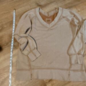 Stylish beige V-neck sweater with long sleeves. Perfect for casual wear. XS but fits baggy for a medium