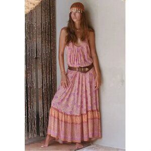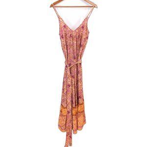 Spell | Village Strappy Maxi Dress in Sunrise Pink & Orange | Size Medium