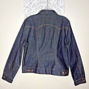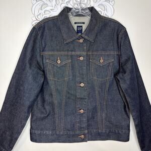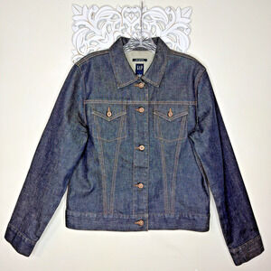 GAP Denim Stretch Jacket Women's size LARGE Made in Hong Kong Dark Wash Blue