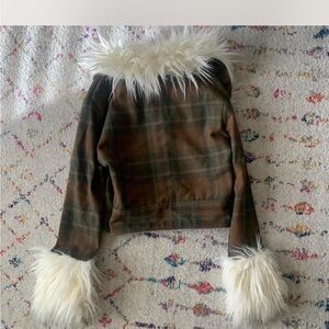 Stay stylish and warm with this chic plaid jacket featuring luxurious faux fur trim. Perfect for adding a touch of elegance to any outfit.