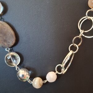 VINTAGE Whimsical Silver Tone, White and Brown Necklace
