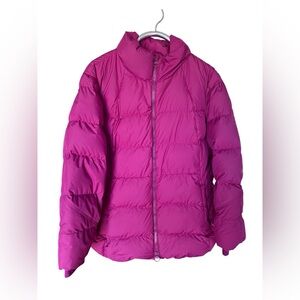 Chic and cozy magenta puffer jacket. Ideal for cold weather.