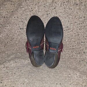 TAOS-Stage Mary Jane Heels-Oxblood Ombre Leather-Hook Loop-Sz 37-Near Mint
