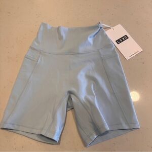 LSKD Fusion Mid Rise Biker Shorts with Pockets Size XS Sky Blue NWT!