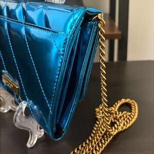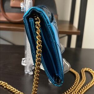 NWOT Kurt Geiger Metallic Blue WOC Crossbody Bag