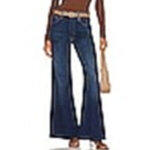 64% cotton, 22% reused cotton, 13% polyester, 1% elastane. Made in USA. Machine wash. Button fly. 5-pocket styling. Subtle stretch denim fabric. 20" at the knee breaks to 26" at the leg opening. Revolve Style No. MOTH-WJ1427. Manufacturer Style No. 1725-1218.