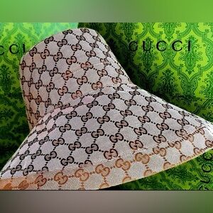 Gucci GG Monogram Bucket Hat Canvas Wide Large Brim Beige Tan Jacquard