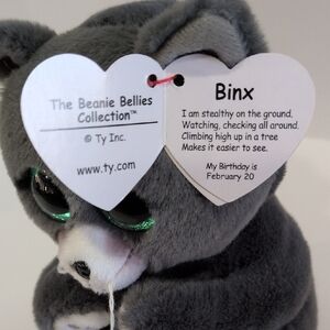 Adorable discontinued TY plush cat trio. Includes gray "Morgan", multicolor "Jenni", and black "Binx" cats. Ideal for plush enthusiasts and collectors with tags in tact