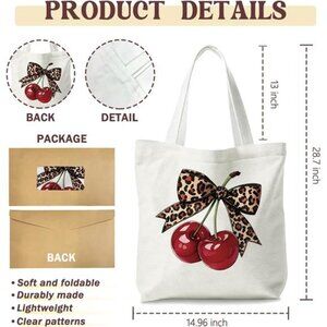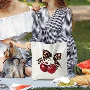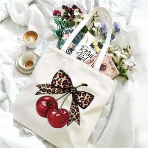 Reusable Canvas Shoulder Bag with Cherry Graphic Design