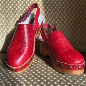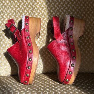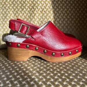 Kelsi Dagger Brooklyn Nash Slingback Red Leather Stud Faux Shealing Lined Clogs