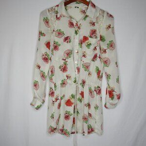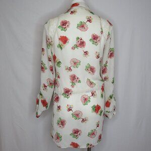 Miss Me Cream Floral Boho Tie Waist Tunic Top Tab Roll Sleeve Women's S Small