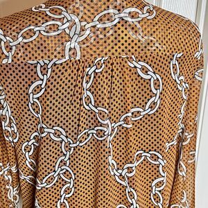 New Direction Top Sz L Mocha And White Chainlink Print Mesh With Lining Pleats