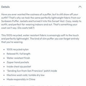 Marine Layer Sunset Puffer Vest Medium NWT