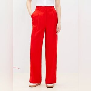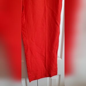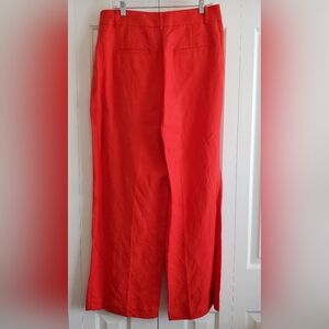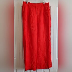 LOFT Peyton Trouser Pants Women 10 Orange Red Linen Viscose Wide Leg Pleated