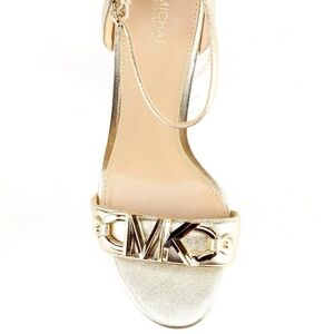 Michael Michael Kors Izzy Pale Gold Metallic Leather Heeled Sandals Size 8