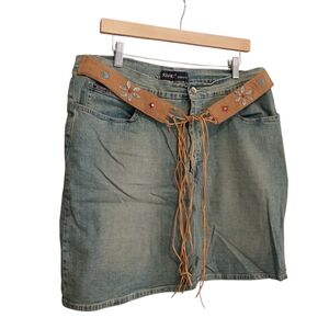 VTG Y2K Revolt Jeans Size 18 Boho Blue Jeans Skirt Beaded Attached Belt Western