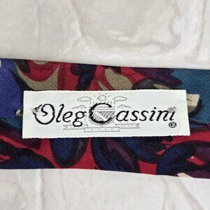 Oleg Cassini 100% Silk Men's Tie Abstract Floral Pattern Red Blue Tan Black Grn