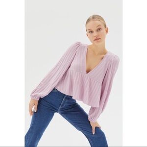 Draper James Allover Geo Printed Long Sleeve Square Neck Top. Burgundy and purple printed. Peasant blouse. Long puff sleeves. Front smocked yoke. Elastic cuffs. Polyester spandex blend. Size XXL. Armpit to armpit: 23". Armpit to end of sleeve: 18". Length: 25.5". (985)