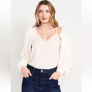 NWT Old Navy Lace-Trim Satin Cami Top, Size Medium Tall, Frosted Cookie