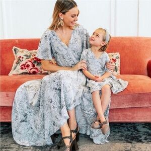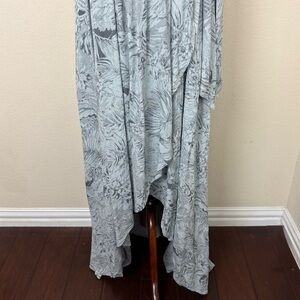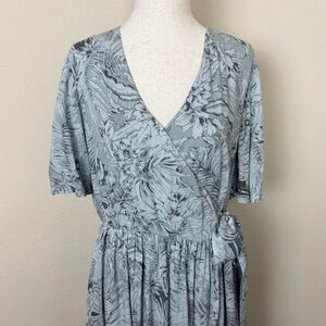 Ivy City Co Misty Island Maxi Wrap Dress Blue Gray Floral V-neck Short Sleeve