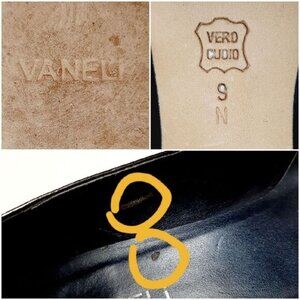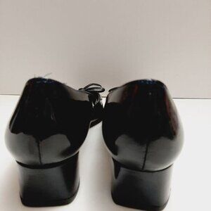 VANELI Bow & Cut-Out Low Heel Navy Blue Patent Genuine Leather Classy Pumps Sz 9