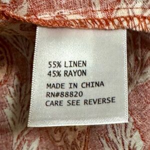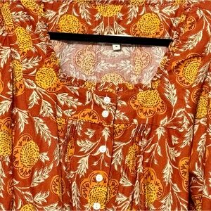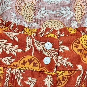 Rachel Zoe Linen Puff Sleeve Button Front Ruffle Square Neckline Blouse Medium