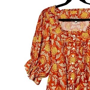 Boho bohemian festival western babydoll boxy puff statement sleeves ruffle linen natural pretty spring summer vacation cruise brunch dinner casual fall floral cottagecore