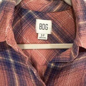 Casual plaid shirt by BDG. Features rust and navy colors. Button-down style with chest pocket. Perfect for everyday wear. Super soft and light weight.