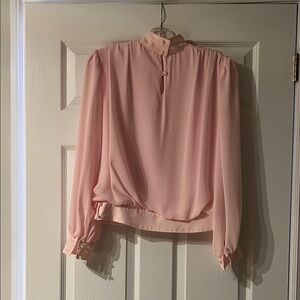 This elegant pink top is perfect for any occasion. Its soft fabric and stylish design make it a must-have in your wardrobe. Pit to pit is 19” unsure of brand vintage style with pearl button accents