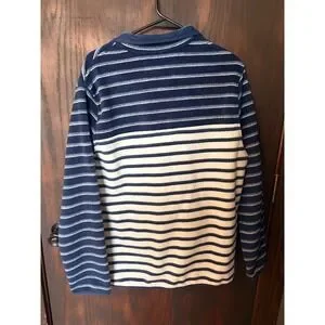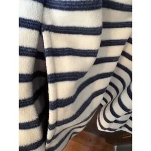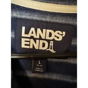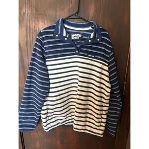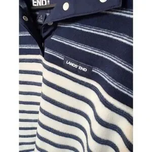 Lands End Womens Navy White Striped Fleece Snap Neck Pullover Sweatshirt Large