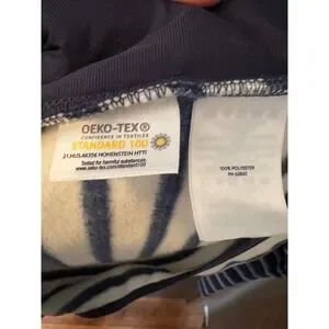 Lands' End fleece pullover features a classic nautical-inspired striped pattern in navy and white. Designed with a snap-button mock neck collar and a woven logo patch on the chest, this cozy long-sleeve top includes convenient side seam pockets. The soft polyester fleece construction ensures warmth and comfort, making it an ideal layering piece for casual outdoor activities or lounging. OEKO-TEX Standard 100 certified for textile safety.