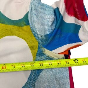 Ali Miles V-Neck Top Womens XL Multicolor Abstract Dot Short Sleeve Stretch Knit