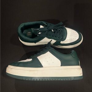 Madden Girl “Natalie” platform sneakers in green and white colorblock. Size 8.5M.