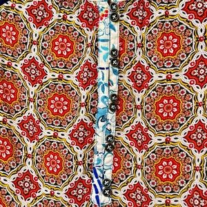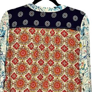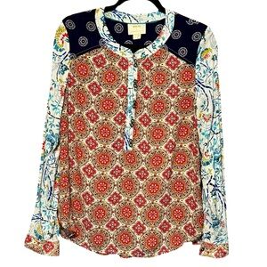 Maeve | Anthropologie Mandala Henley Boho V-Neckline Mixed Print Blouse Top