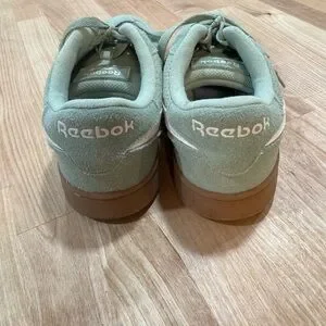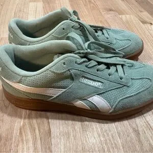 Women’s Reebok Green Suede Sneakers with White Stripe and Brown Soles