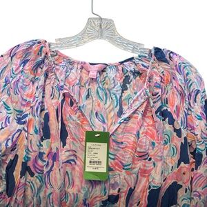 Lilly Pulitzer Willa Blouse Head in the Sand Ostrich Pink Size M Popover Top NWT