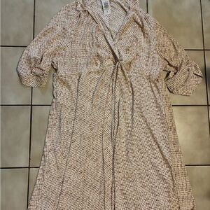 Chic long sleeve dress with a cream plaid pattern. Features a flattering fit and stylish design.