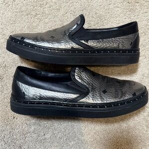 Elegant MCM loafers with a metallic finish. Black accents add sophistication. Ideal for versatile wear.