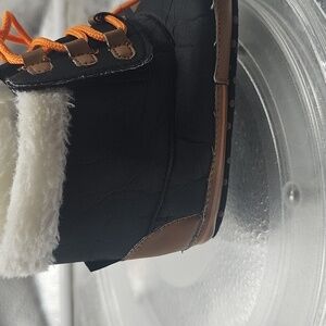 E Black And Orange With A White Fur Top But Thay Do Not Have A Brand On Them